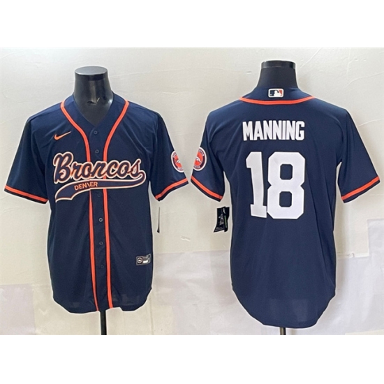 Men's Denver Broncos #18 Peyton Manning Navy Cool Base Stitched Baseball Jersey