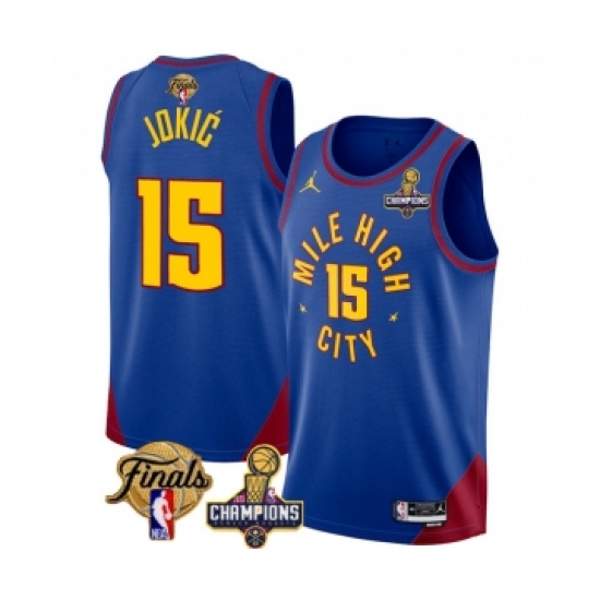 Men's Denver Nuggets #15 Nikola Jokic Blue 2023 Nuggets Champions And Finals Statemenr Edition Stitched Basketball Jersey