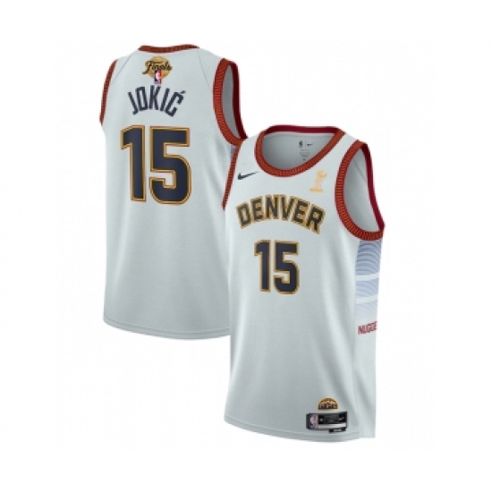 Men's Denver Nuggets #15 Nikola Jokic White 2023 Finals Collection With NO.6 Stitched Basketball Jersey