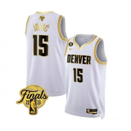 Men's Denver Nuggets #15 Nikola Jokic White 2023 Finals Collection With NO.6 Stitched Basketball Jersey