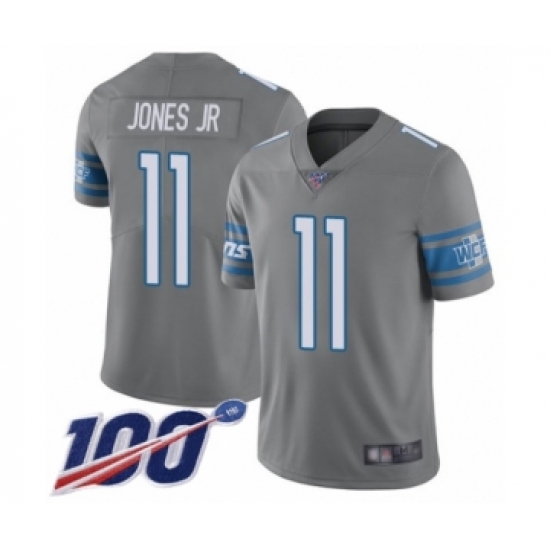 Men's Detroit Lions #11 Marvin Jones Jr Limited Steel Rush Vapor Untouchable 100th Season Football Jersey
