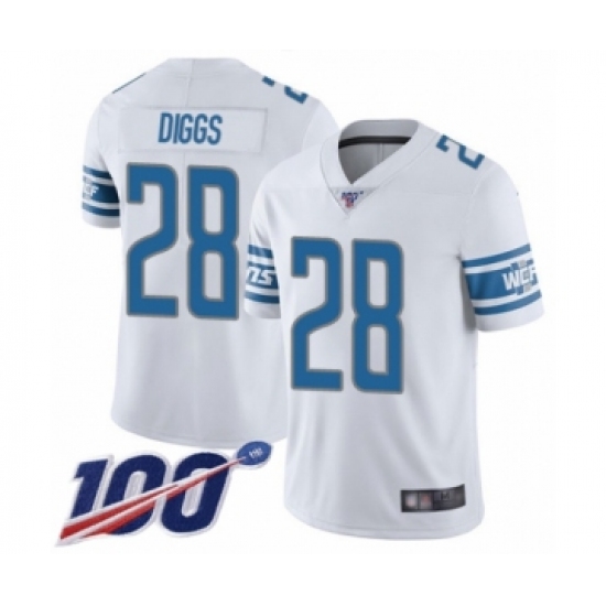Men's Detroit Lions #28 Quandre Diggs White Vapor Untouchable Limited Player 100th Season Football Jersey