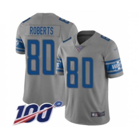 >Men's Detroit Lions #80 Michael Roberts Limited Gray Inverted Legend 100th Season Football Jersey