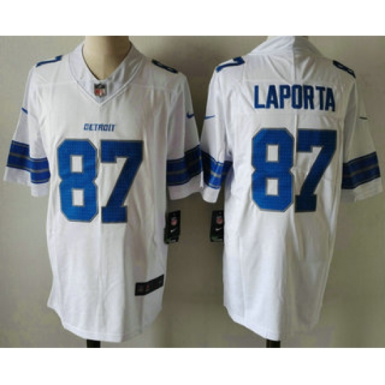 >Men's Detroit Lions #87 Sam Laporta Limited White 2024 Vapor Stitched Jersey