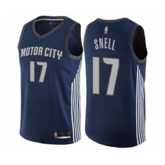 >Men's Detroit Pistons #17 Tony Snell Authentic Navy Blue Basketball Jersey - City Edition