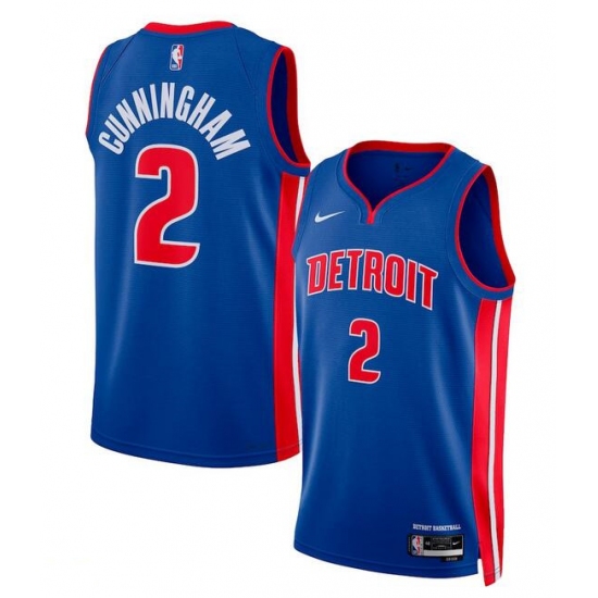 >Men's Detroit Pistons #2 Cade Cunningham Blue 2024 Icon Edition Stitched Baseball Jersey
