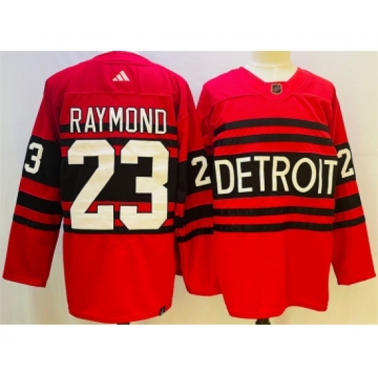 Men's Detroit Red Wings #23 Lucas Raymond Red 2022-23 Reverse Retro Stitched Jersey
