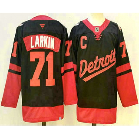 >Men's Detroit Red Wings #71 Dylan Larkin Black 2025 Stadium Series Stitched Jersey