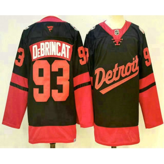 >Men's Detroit Red Wings #93 Alex DeBrincat Black 2025 Stadium Series Stitched Jersey