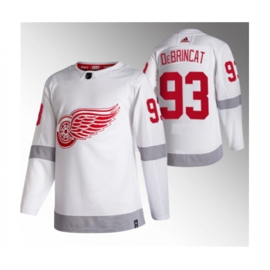 >Men's Detroit Red Wings #93 Alex DeBrincat White 2020-21 Reverse Retro Stitched Jersey