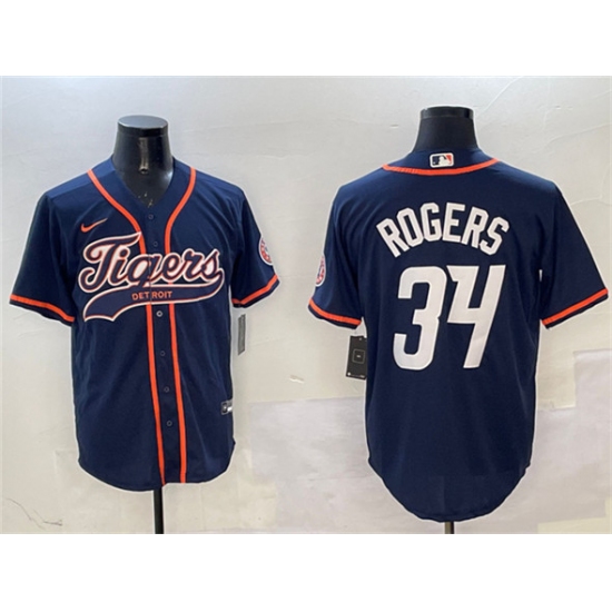 >Men's Detroit Tigers #34 Jake Rogers Navy With Cool Base Stitched Baseball Jersey