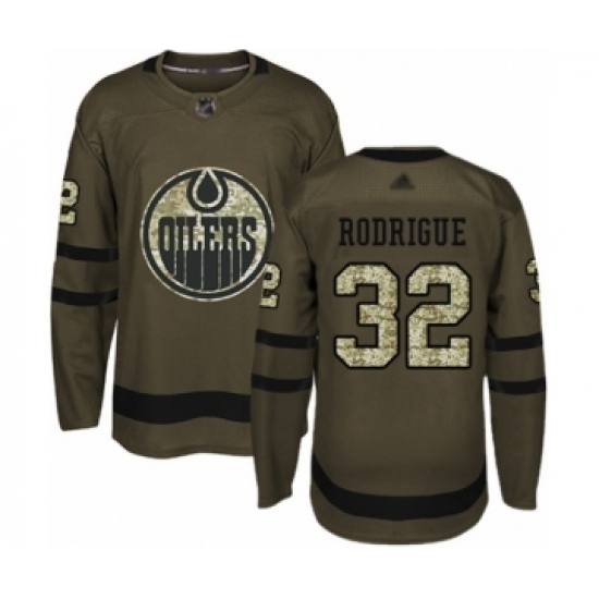 >Men's Edmonton Oilers #32 Olivier Rodrigue Authentic Green Salute to Service Hockey Jersey