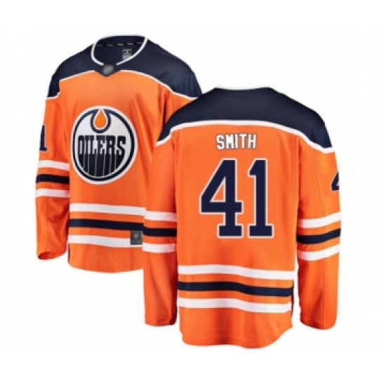 Men's Edmonton Oilers #41 Mike Smith Authentic Orange Home Fanatics Branded Breakaway Hockey Jersey