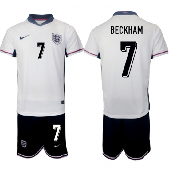 >Men's England #7 Beckham 2024-25 White Home Soccer Jersey Suit