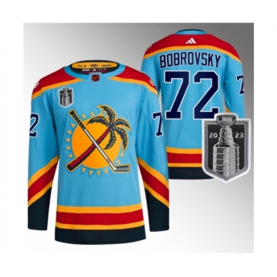 Men's Florida Panthers #72 Sergei Bobrovsky Blue 2023 Stanley Cup Final Reverse Retro Stitched Jersey
