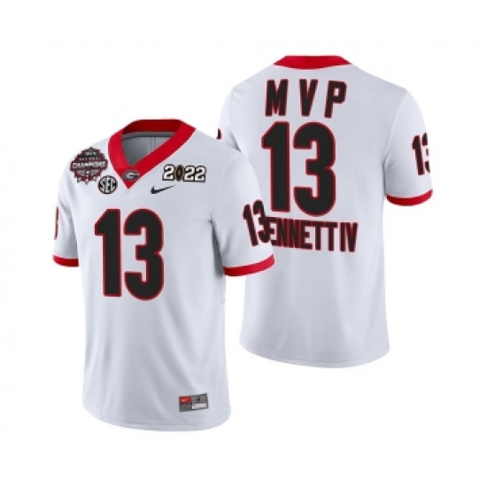 >Mens Georgia Bulldogs #13 Stetson Bennett IV White 2021-22 National Champions College Football Game MVP Jersey