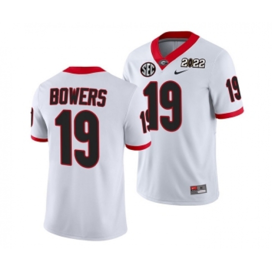 >Men’s Georgia Bulldogs #19 Brock Bowers 2022 Patch White College Football Stitched Jersey