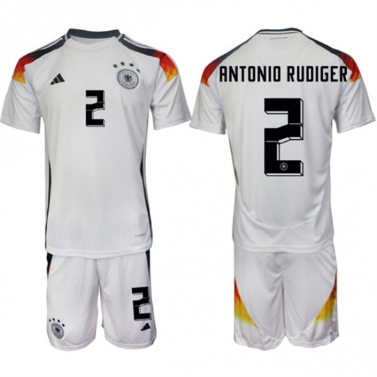 >Men's Germany #2 Antonio Rüdiger White 2024-25 Home Soccer Jersey Suit