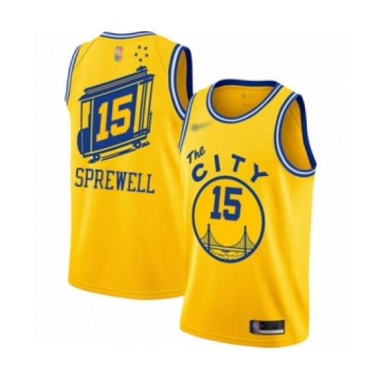 Men's Nike Golden State Warriors #15 Latrell Sprewell Swingman Gold 2018 NBA Finals Bound NBA Jersey - City Edition