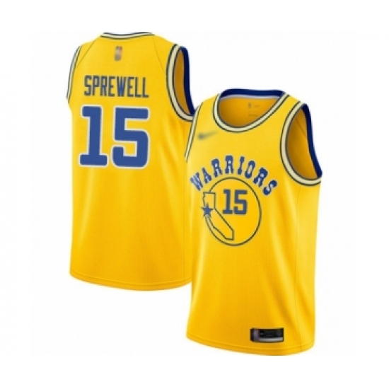 Men's Golden State Warriors #15 Latrell Sprewell Swingman Gold 2019 Basketball Finals Bound Basketball Jersey - City Edition
