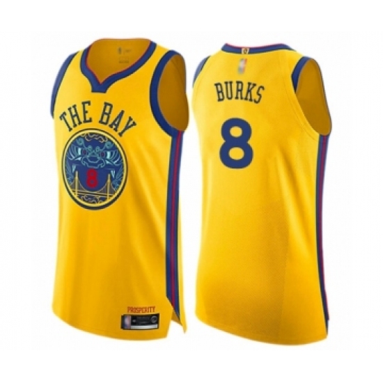 Men's Golden State Warriors #8 Alec Burks Authentic Gold Basketball Jersey - City Edition