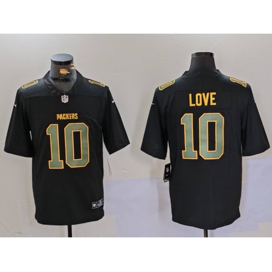 >Men's Green Bay Packers #10 Jordan Love Black Fashion Vapor Limited Stitched Football Jersey