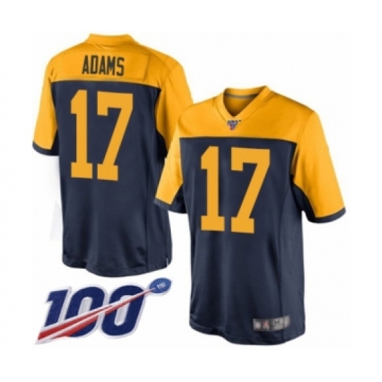 >Men's Green Bay Packers #17 Davante Adams Limited Navy Blue Alternate 100th Season Football Jersey