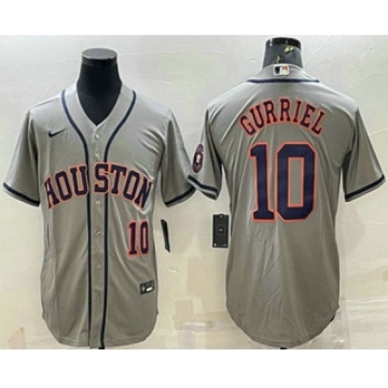Men's Houston Astros #10 Yuli Gurriel Number Grey With Patch Stitched MLB Cool Base Nike Jersey