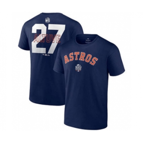 >Men's Houston Astros #27 Jose Altuve 2021 Navy World Series Bound Closer Name & Number Baseball T-Shirt