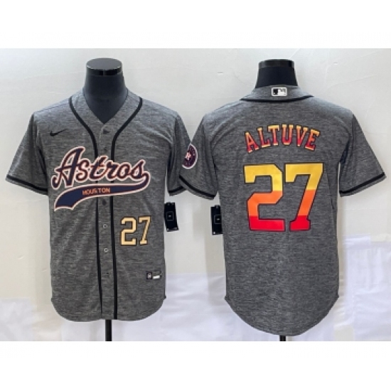 Men's Houston Astros #27 Jose Altuve Number Grey Gridiron Cool Base Stitched Baseball Jersey