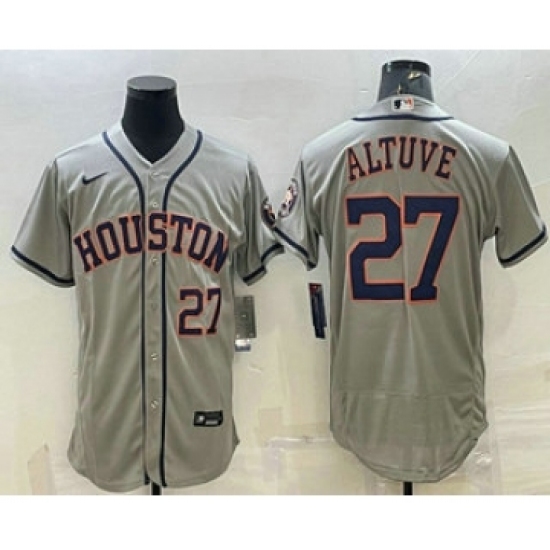 >Men's Houston Astros #27 Jose Altuve Number Grey Stitched MLB Flex Base Nike Jersey