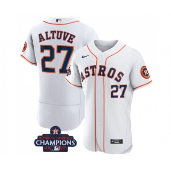Men's Houston Astros #27 Jose Altuve White 2022 World Series Champions Flex Base Stitched Baseball Jersey