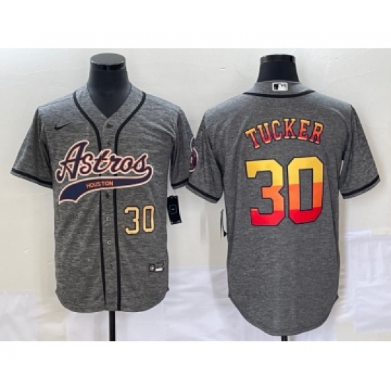 Men's Houston Astros #30 Kyle Tucker Number Grey Gridiron Cool Base Stitched Baseball Jersey