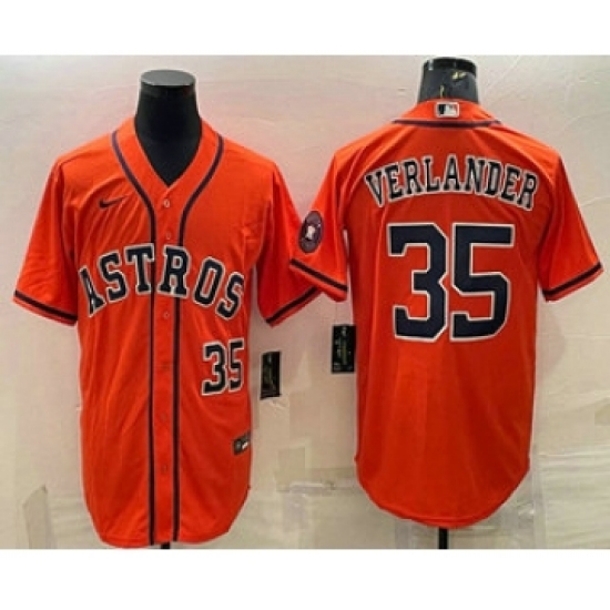 Men's Houston Astros #35 Justin Verlander Number Orange With Patch Stitched MLB Cool Base Nike Jersey