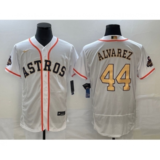 Men's Houston Astros #44 Yordan Alvarez 2023 White Gold World Serise Champions Flex Base Stitched Jersey