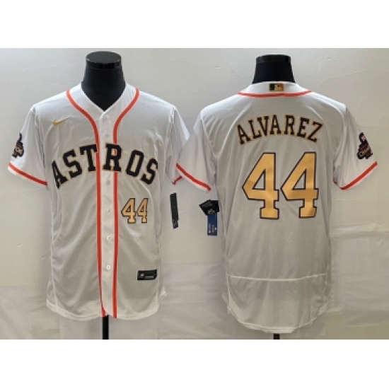 Men's Houston Astros #44 Yordan Alvarez Number 2023 White Gold World Serise Champions Flex Base Stitched Jersey1