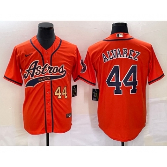Men's Houston Astros #44 Yordan Alvarez Number Orange Cool Base Stitched Baseball Jersey