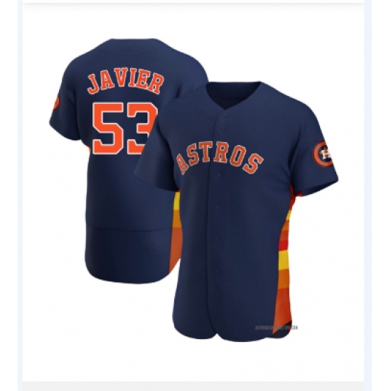 >Men's Houston Astros #53 Cristian Javier Authentic Navy Alternate Jersey