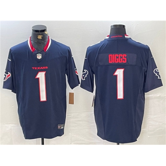>Men's Houston Texans #1 Stefon Diggs Navy F.U.S.E. Vapor Limited Football Stitched Jersey