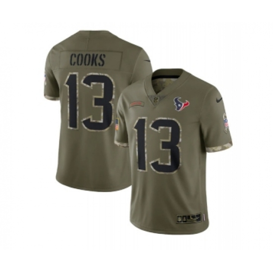Men's Houston Texans #13 Brandin Cooks 2022 Olive Salute To Service Limited Stitched Jersey