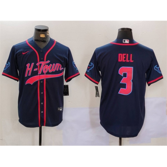 Men's Houston Texans #3 Tank Dell Navy With Cool Base Stitched Baseball Jersey