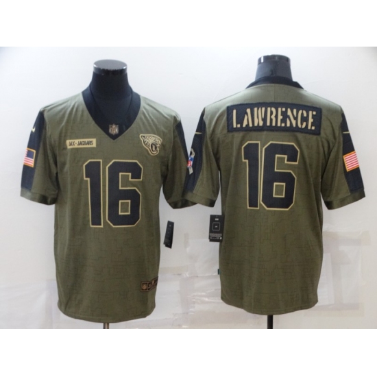 >Men's Jacksonville Jaguars #16 Trevor Lawrence Nike Olive 2021 Salute To Service Limited Player Jersey