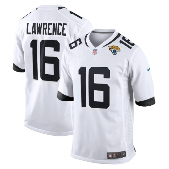 >Men's Jacksonville Jaguars #16 Trevor Lawrence White Nike Teal 2021 NFL Draft First Round Pick Game Jersey