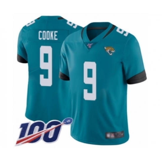 >Men's Jacksonville Jaguars #9 Logan Cooke Teal Green Alternate Vapor Untouchable Limited Player 100th Season Football Jersey