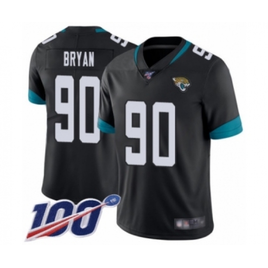 >Men's Jacksonville Jaguars #90 Taven Bryan Black Team Color Vapor Untouchable Limited Player 100th Season Football Jersey