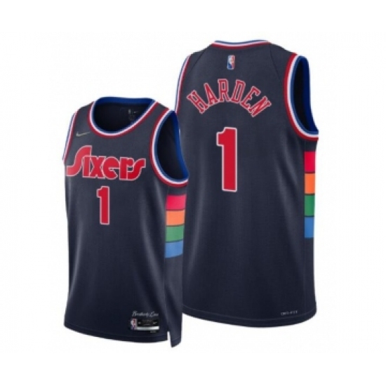 >Men's James Harden 76ers 2022 City Edition Navy #1 Jersey