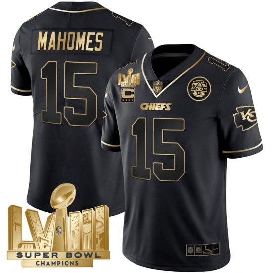 Men's Kansas City Chiefs #15 Patrick Mahomes Black 2024 F.U.S.E. Super Bowl LVIII Vapor Untouchable Limited Football Stitched Jersey