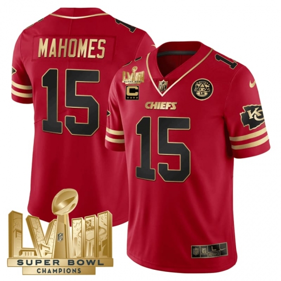 Men's Kansas City Chiefs #15 Patrick Mahomes Red 2024 F.U.S.E. Super Bowl LVIII Vapor Untouchable Limited Football Stitched Jersey