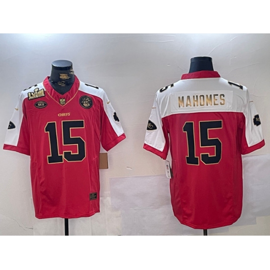 Men's Kansas City Chiefs #15 Patrick Mahomes Red With Gold Super Bowl LVIII Patch Limited Stitched Football Jersey