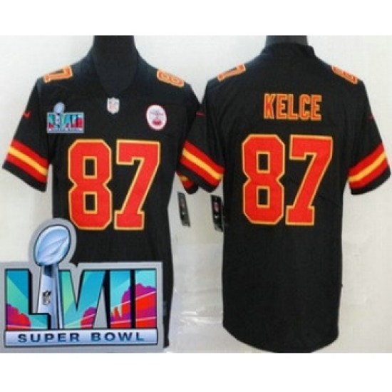 Men's Kansas City Chiefs #87 Travis Kelce Limited Black Super Bowl LVII Vapor Jersey